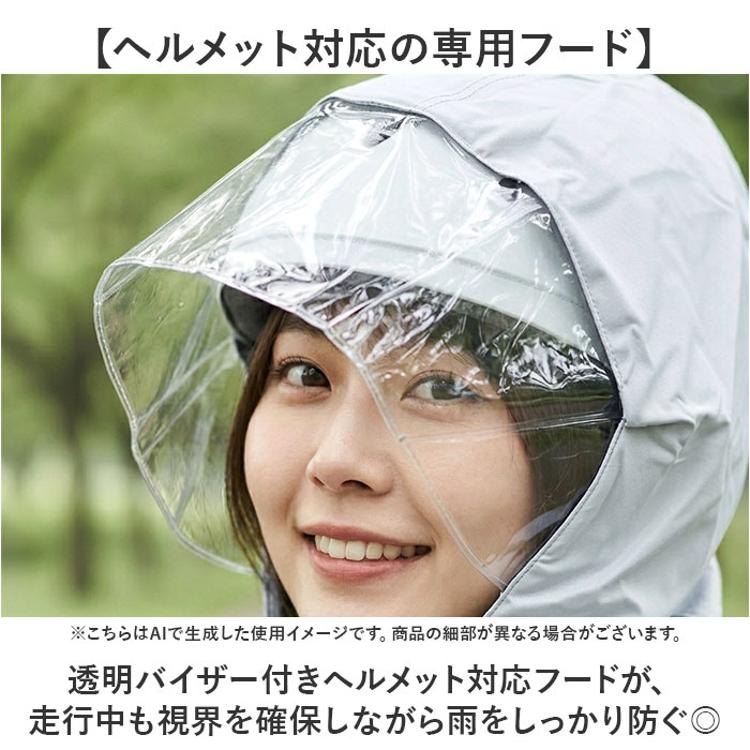 ・透明バイザー付きヘルメット対応フードが、走行中も視界を確保しながら雨をしっかり防ぐ◎