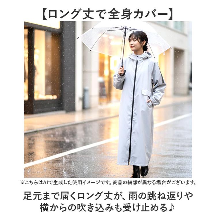 ・足元まで届くロング丈が、雨の跳ね返りや横からの吹き込みも受け止める♪