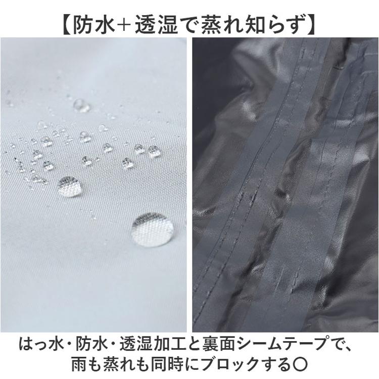 ・はっ水・防水・透湿加工と裏面シームテープで、雨も蒸れも同時にブロックする〇