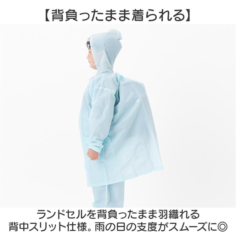 ・ランドセルを背負ったまま羽織れる背中スリット仕様。雨の日の支度がスムーズに◎