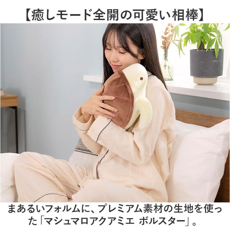 ・まあるいフォルムに、プレミアム素材の生地を使った「マシュマロアクアミエ ボルスター」。