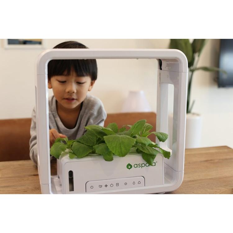 ・誰でもどこでも簡単に、種から野菜やハーブ、お花を育てることができる屋内用水耕栽培キット。
