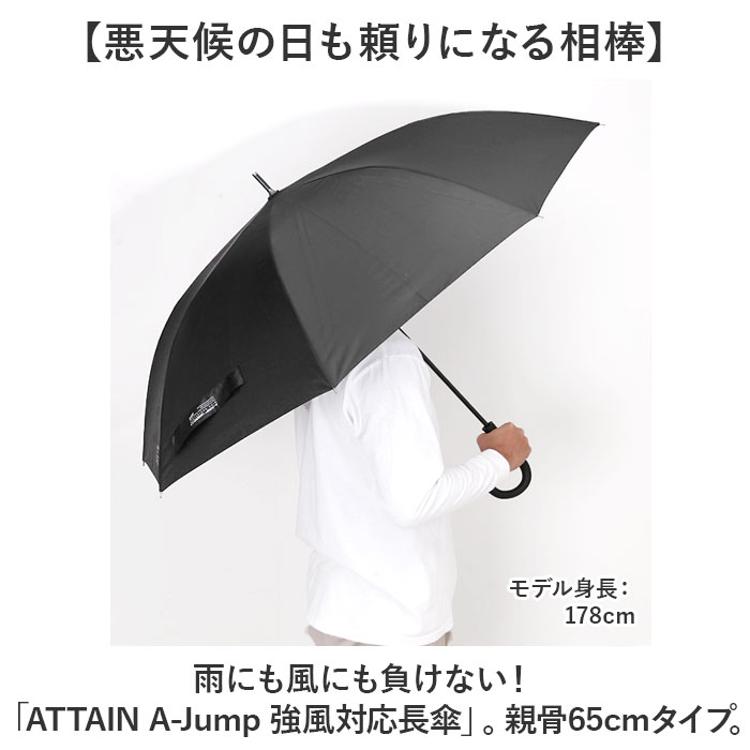 ・雨にも風にも負けない!「ATTAIN A-Jump 強風対応長傘」。親骨65cmタイプ。