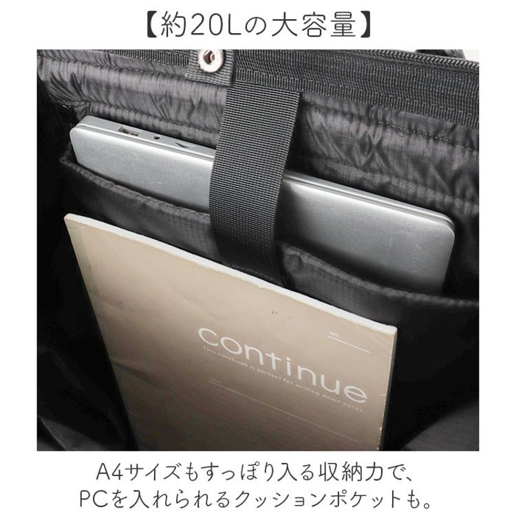 ・A4サイズもすっぽり入る収納力で、PCを入れられるクッションポケットも。