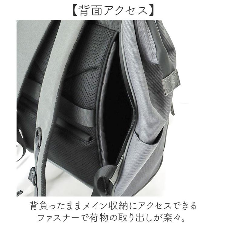 ・背負ったままメイン収納にアクセスできるファスナーで荷物の取り出しが楽々。