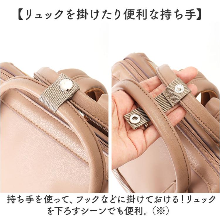 ・持ち手を使って、フックなどに掛けておける!リュックを下ろすシーンでも便利。