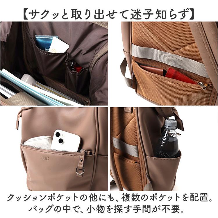 ・13.3インチまでのノートPCを収納できるクッションポケット付。通勤・通学や出張にも。