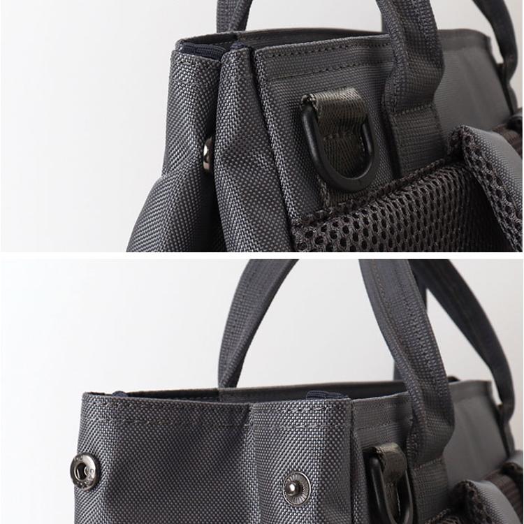 ・持ち手付きでフックに掛けてもトート風に持ってもOK。キャリーオン機能で旅行シーンにも大活躍!