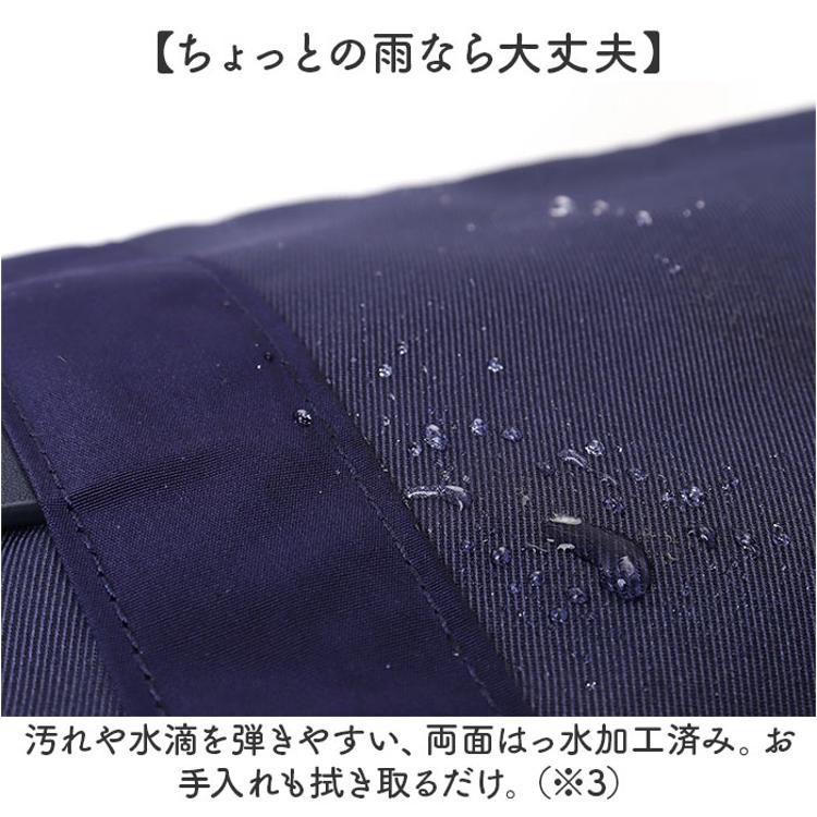 ・汚れや水滴を弾きやすい、両面はっ水加工済み。お手入れも拭き取るだけ。