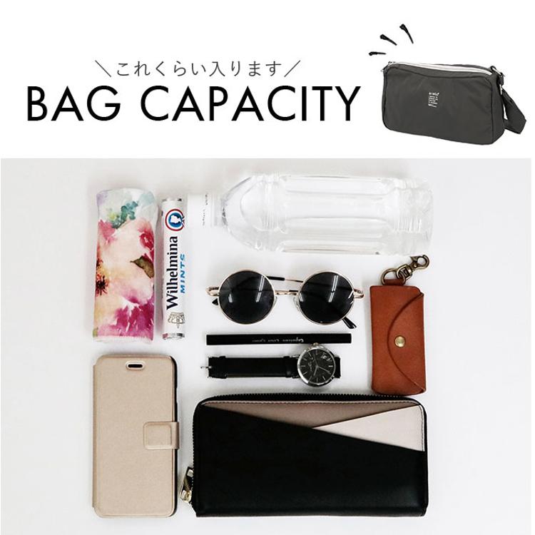 ・長財布や500mlペットボトルが横向きに。ミニポーチなどもINできるサイズ感。