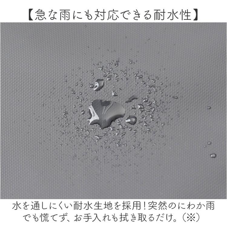 ・水を通しにくい耐水生地を採用!突然のにわか雨でも慌てず、お手入れも拭き取るだけ。