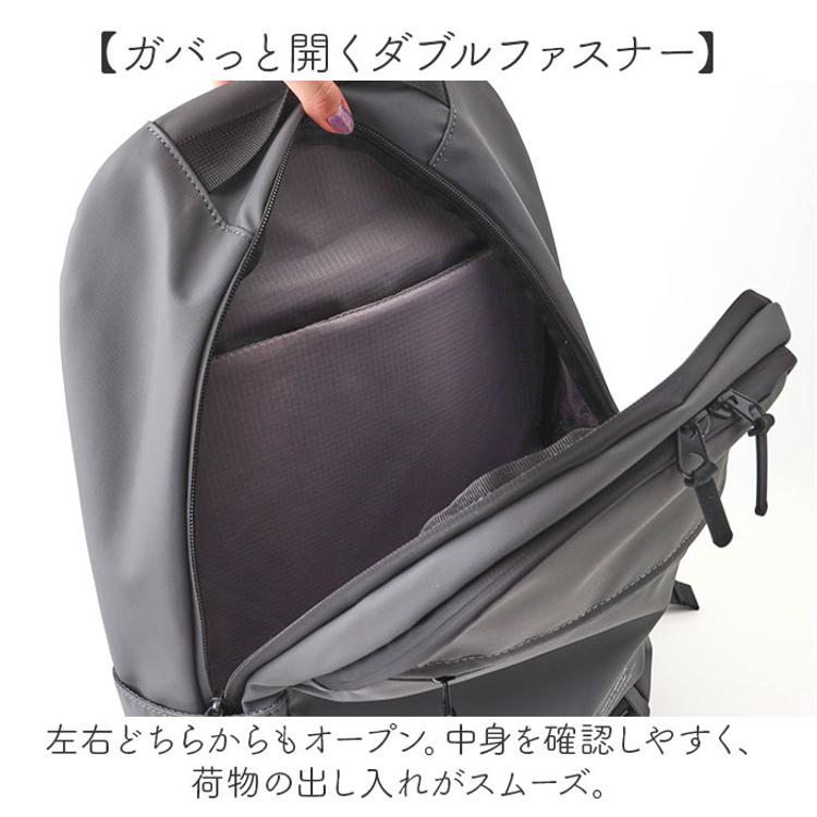 (※)メインルーム、前面・背面ポケットは止水ファスナー仕様です。水を通しにくい生地を使用しておりますが、完全防水ではありません。