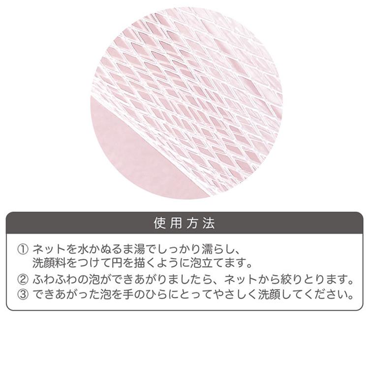 ・ネットを濡らし、洗顔料をつけて泡立てる。泡が出来上がったらネットから絞り取って洗顔◎