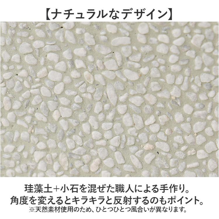 ・珪藻土+小石を混ぜた職人による手作り。角度を変えるとキラキラと反射するのもポイント。※天然素材使用のため、ひとつひとつ風合いが異なります。