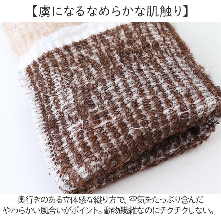 ・奥行きのある立体感な織り方で、空気をたっぷり含んだやわらかい風合いがポイント。動物繊維なのにチクチクしない。