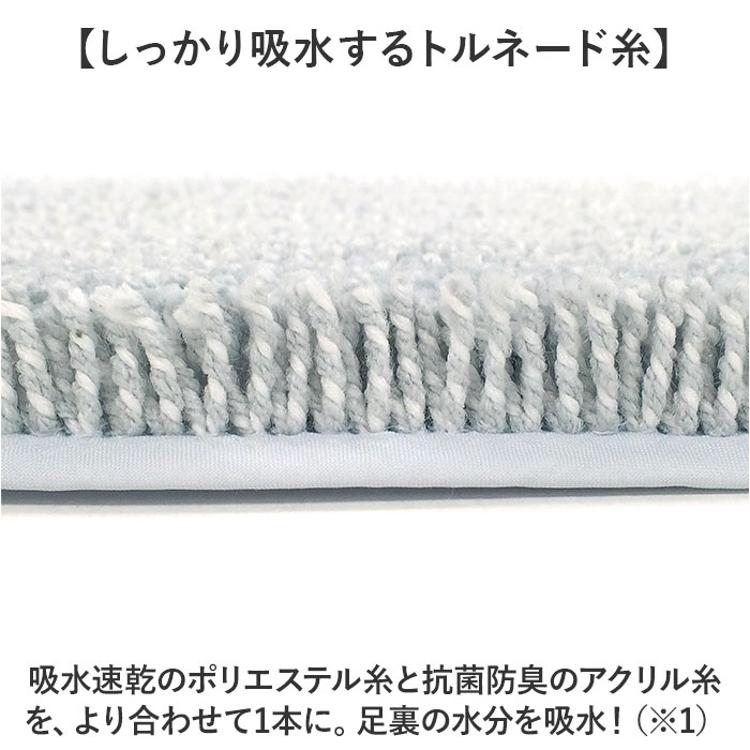 ・脚が沈み込む程長めのパイルが足指の間に残った水分を優しく吸水。ボリュームのある踏み心地。