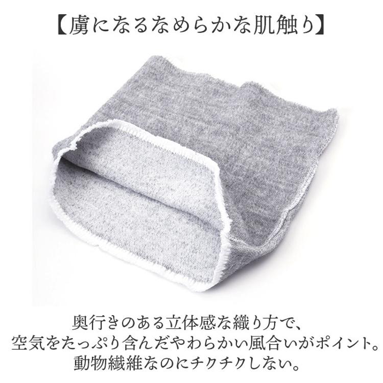 ・奥行きのある立体感な織り方で、空気をたっぷり含んだやわらかい風合いがポイント。動物繊維なのにチクチクしない。