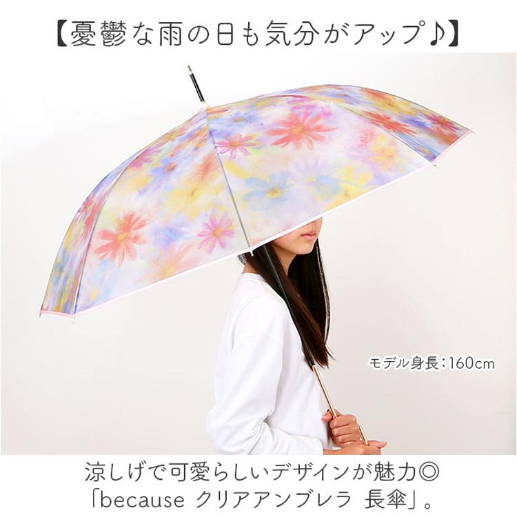 ・涼しげで可愛らしいデザインが魅力◎「because クリアアンブレラ 長傘」。