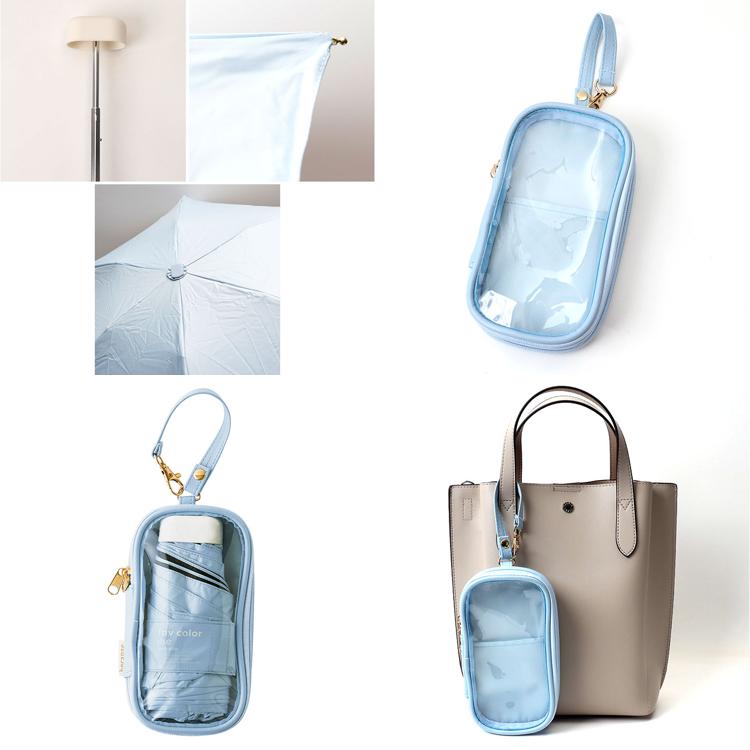 ・多機能ポーチ付き「because PUファボカラーミーアンブレラ 折りたたみ傘」。