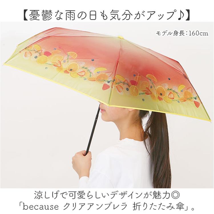 ・涼しげで可愛らしいデザインが魅力◎「because クリアアンブレラ 折りたたみ傘」。