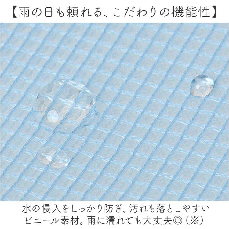・水の侵入をしっかり防ぎ、汚れも落としやすいビニール素材。雨に濡れても大丈夫◎