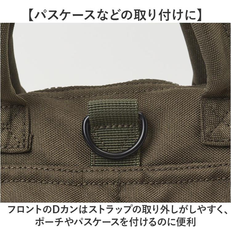 ・フロントのDカンはストラップの取り外しがしやすく、ポーチやパスケースを付けるのに便利