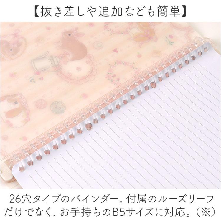 26穴タイプのバインダー。付属のルーズリーフだけでなく、お手持ちのB5サイズに対応。