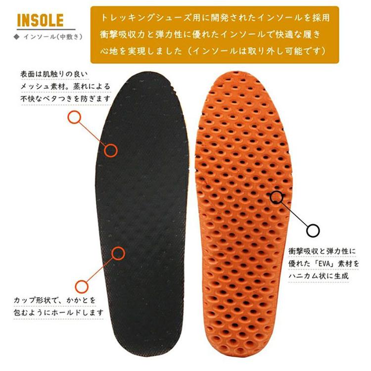 ・取り外し可能なメッシュインソールでムレによる不快感を軽減。