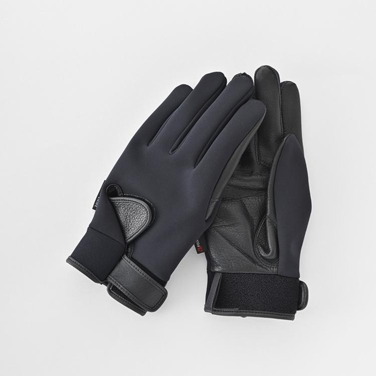 ・次世代のテクニカルアウターウェアと呼ばれるPOLARTEC社の「ネオシェル」とウォッシャブルレザーを使用したフィット感のあるバイクグローブ。
