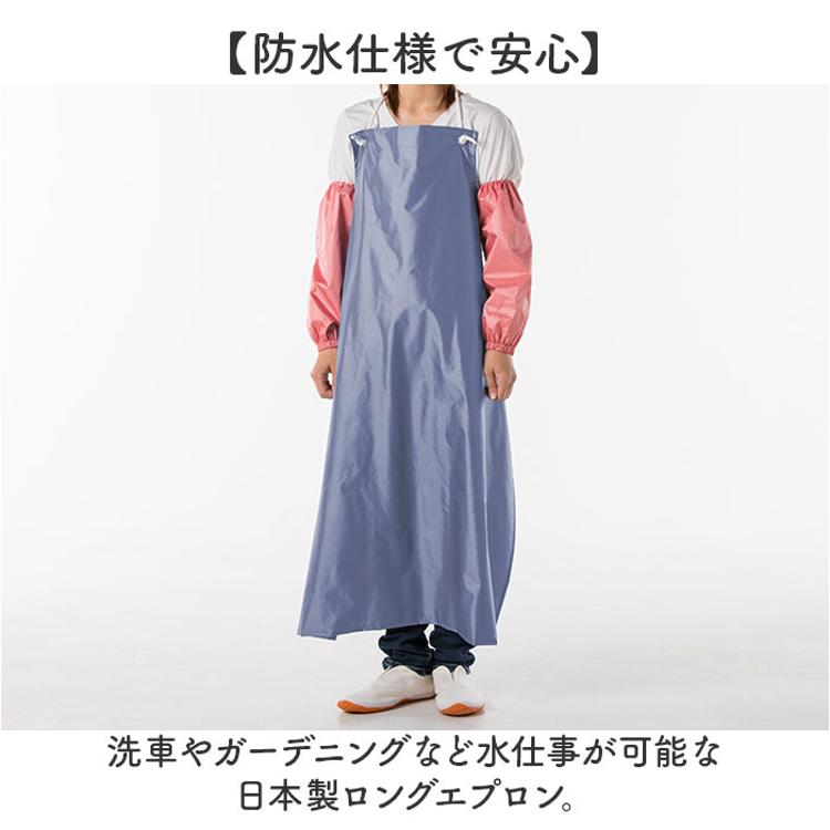 ・洗車やガーデニングなど水仕事が可能な日本製ロングエプロン。