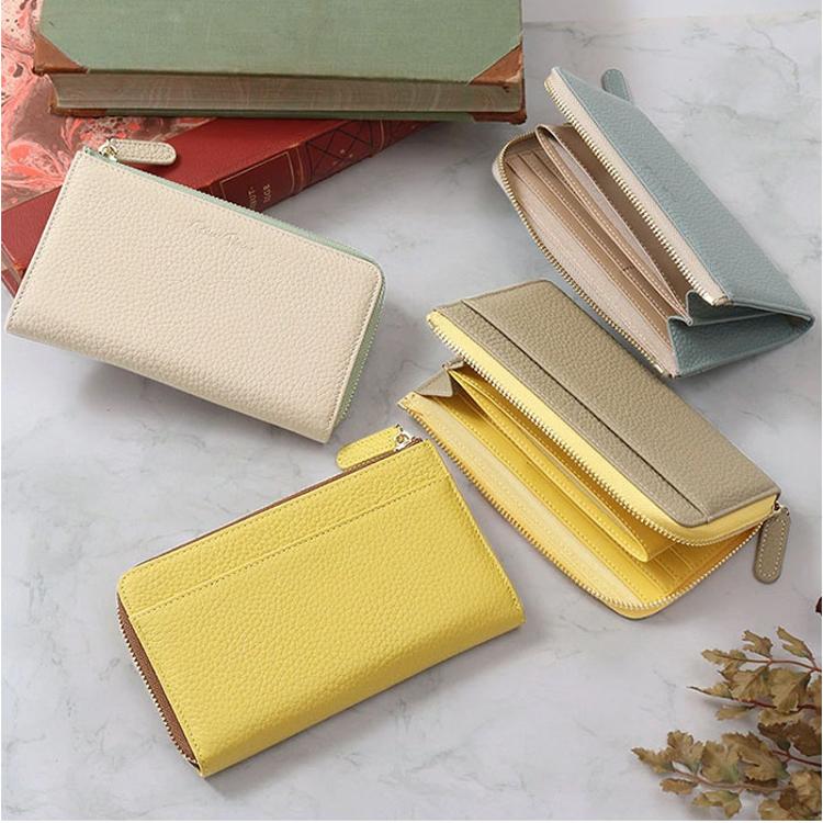 ・Blanc Pommeが届ける本革シボの短めスリムL字長財布。