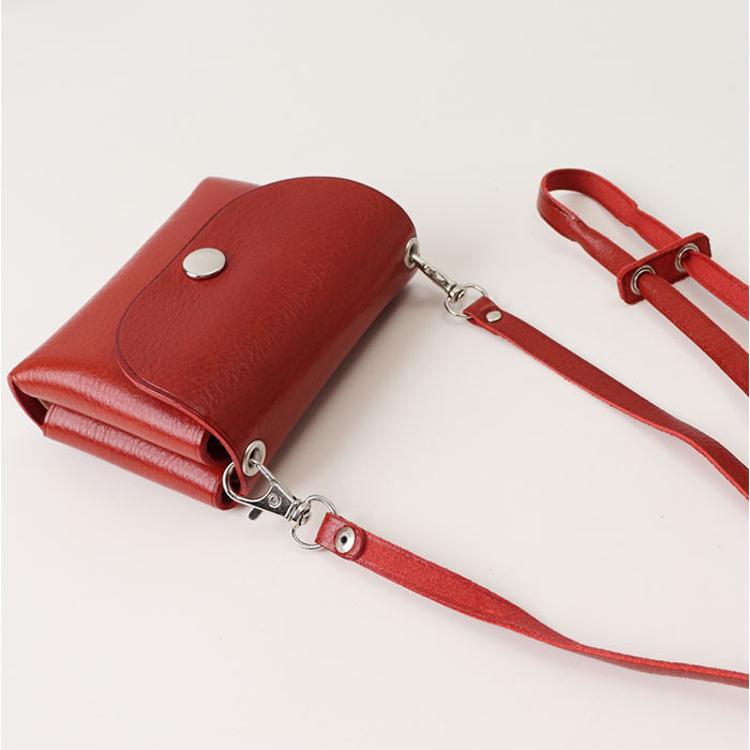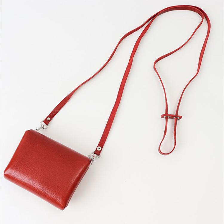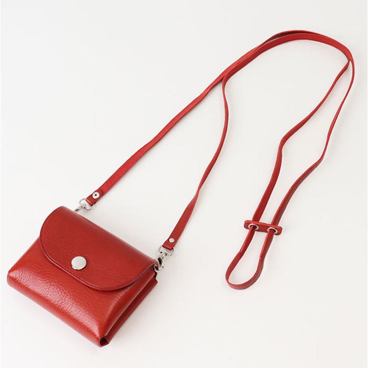 ・取り外し式ショルダーベルトでネックポーチ風にも使えるコンパクトレザー財布。日本製。