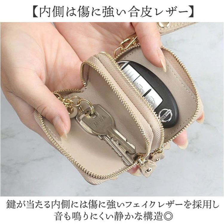 ・Blanc Pommeの牛革キーケースはWジップでスマートキーも鍵も整理。
