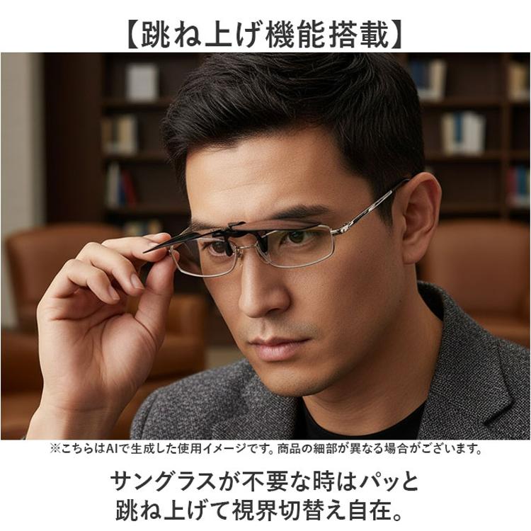 商品説明【ワンタッチ装着】普段の眼鏡が偏光サングラスにクリップで簡単に変身。