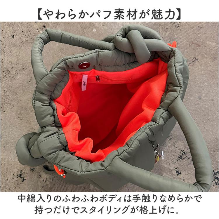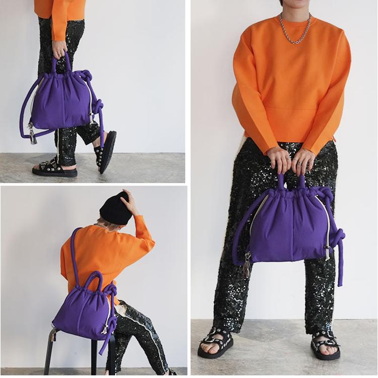 ・中綿入りのふわふわボディは手触りなめらかで持つだけでスタイリングが格上げに。