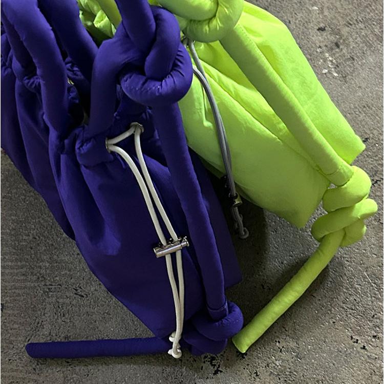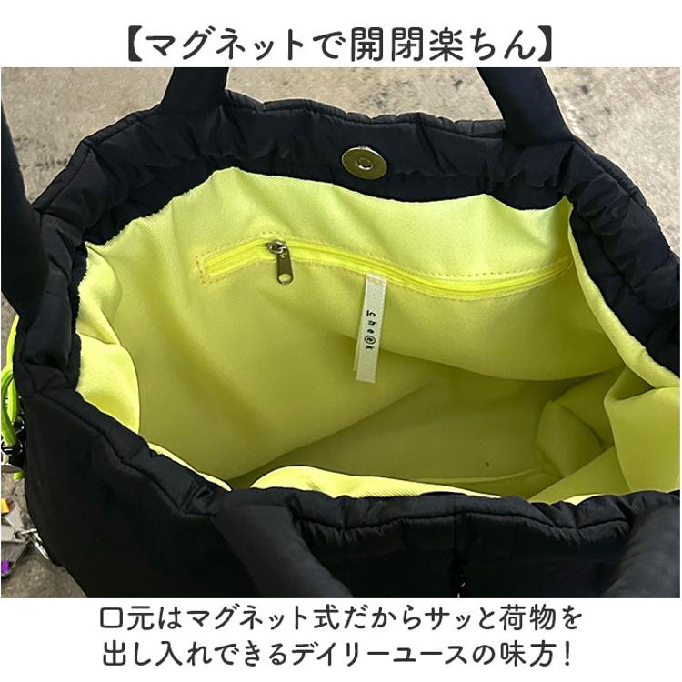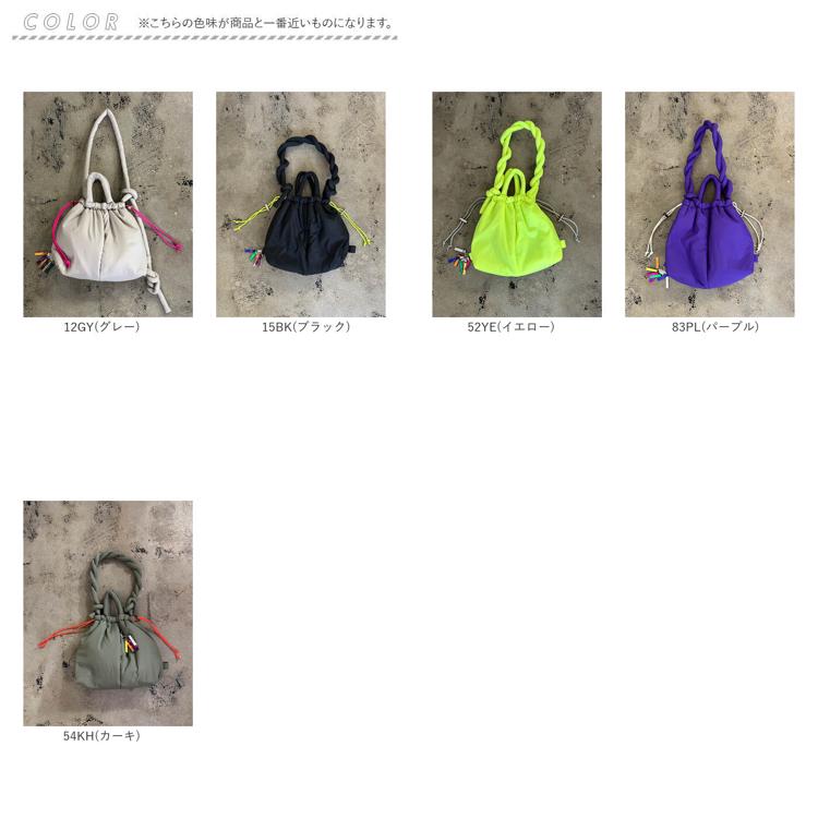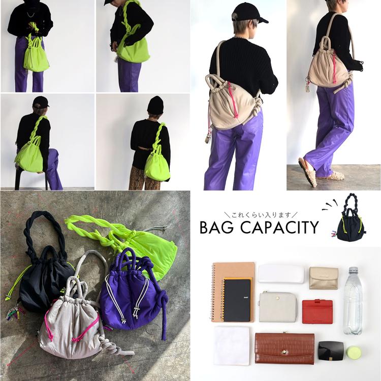 ・バイカラーが目を引く配色でコーデの主役になれる。「cheek チーク puff kinchaku 2WAY tote」