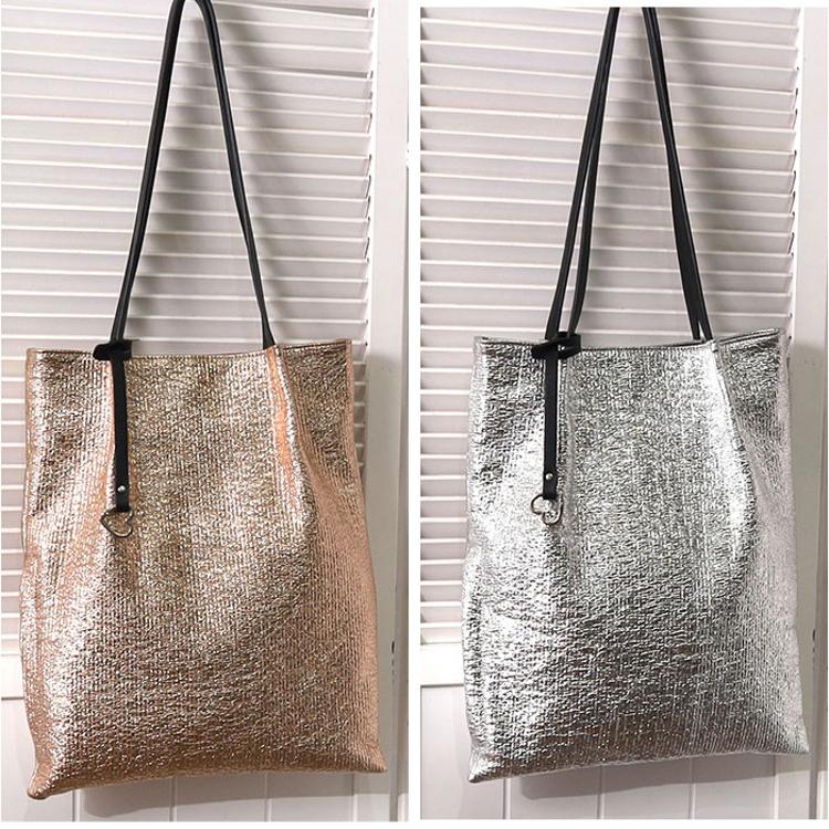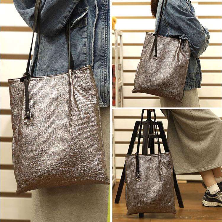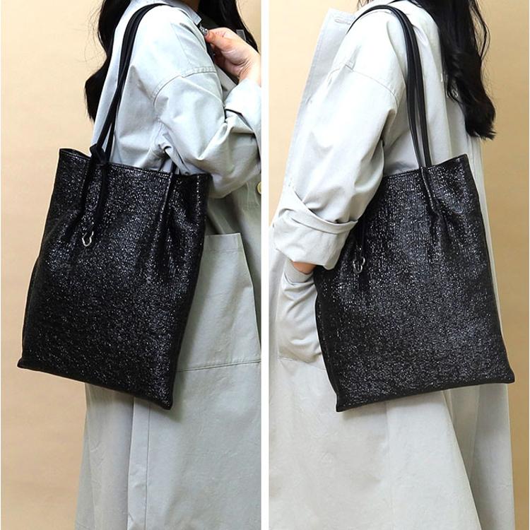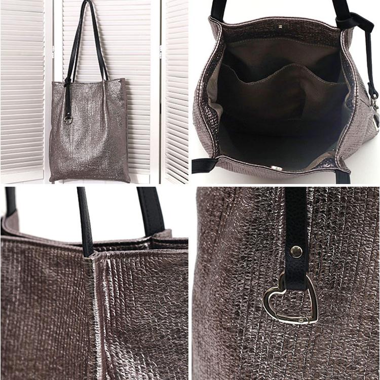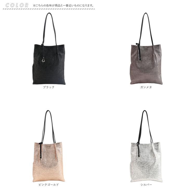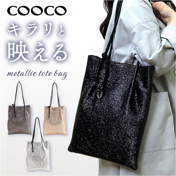 商品名cooco メタリックツマミハンドルフラットトートバッグ