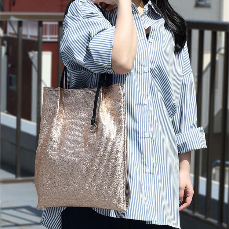 ・シンプルコーデを華やかに演出♪「cooco メタリックツマミハンドルフラットトートバッグ」