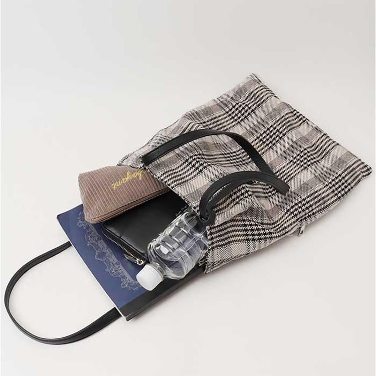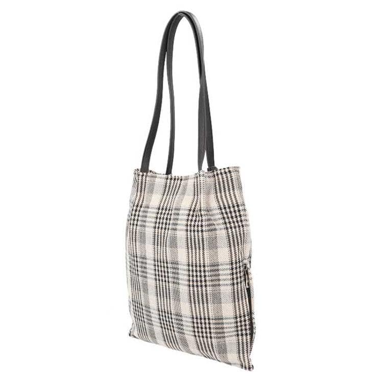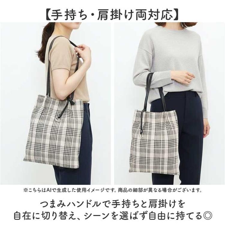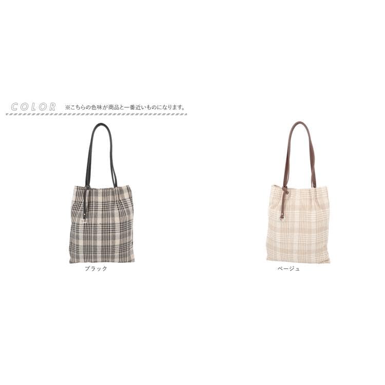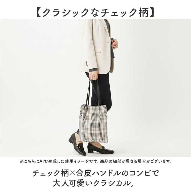 商品名cooco チェック柄ツマミハンドルフラットトートバッグ