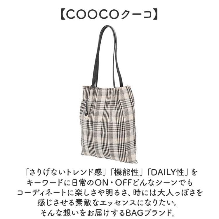 coocoトートバッグ 通販 クーコ バッグ トート A4 縦 チェック柄 肩掛けバッグ 肩掛けカバン レディース 手提げバッグ バック レディースバッグ 鞄 かばん カバン 縦型 軽量 可愛い かわいい オシャレ おしゃれ