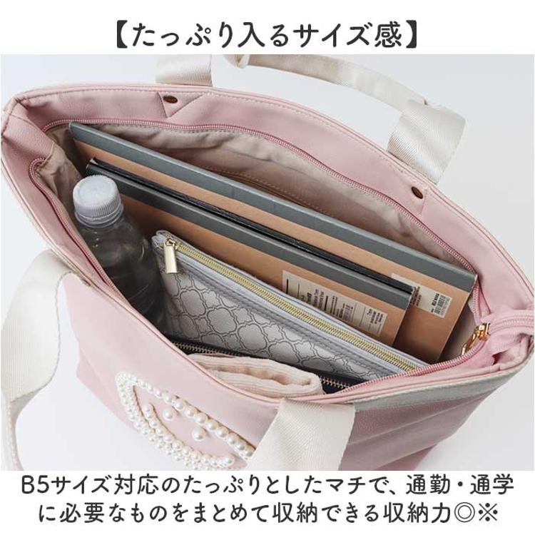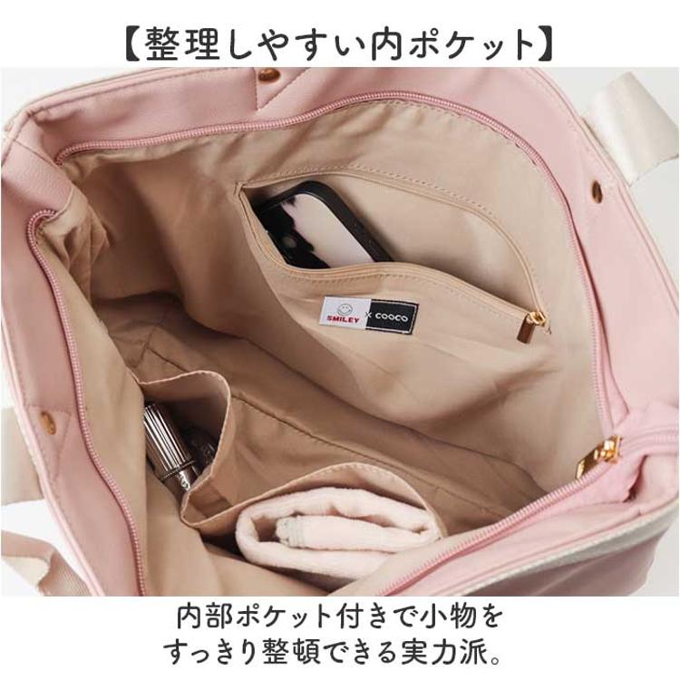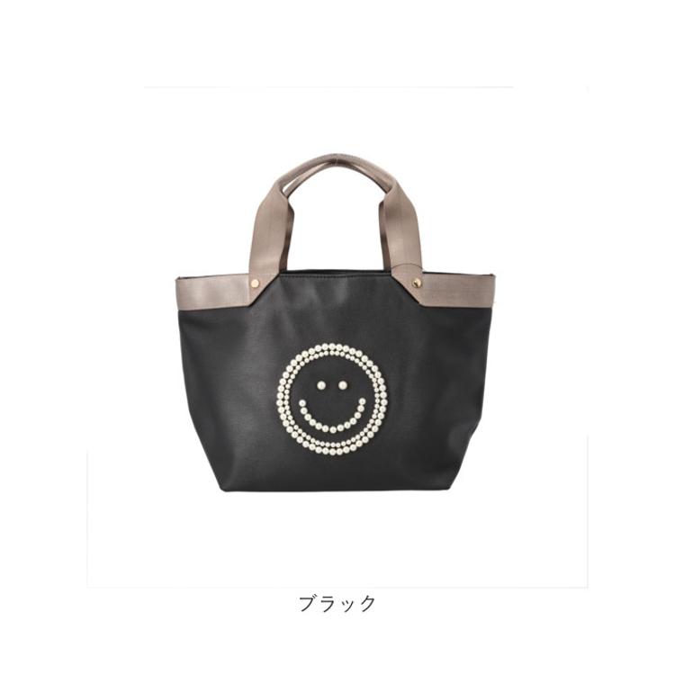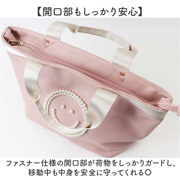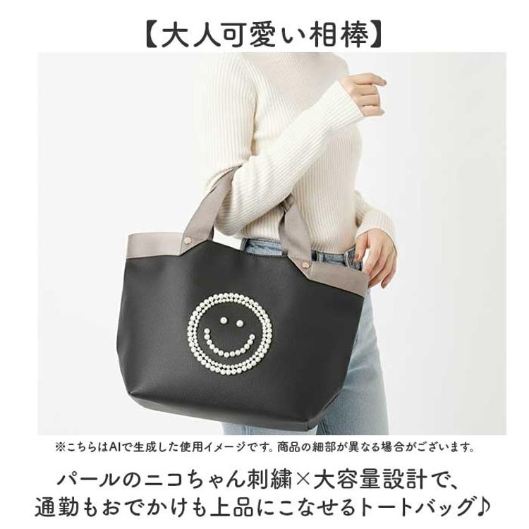 ・パールのニコちゃん刺繍×大容量設計で、通勤もおでかけも上品にこなせるトートバッグ♪