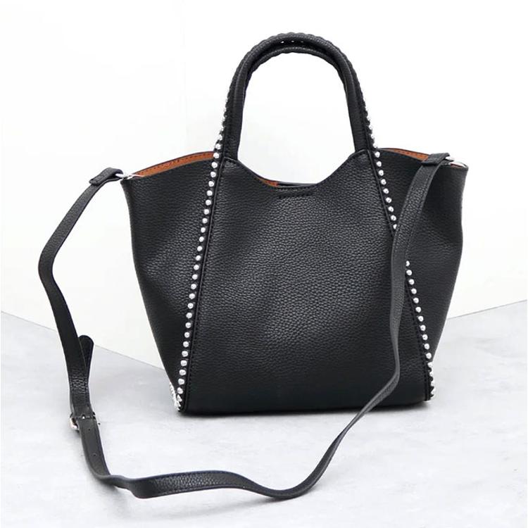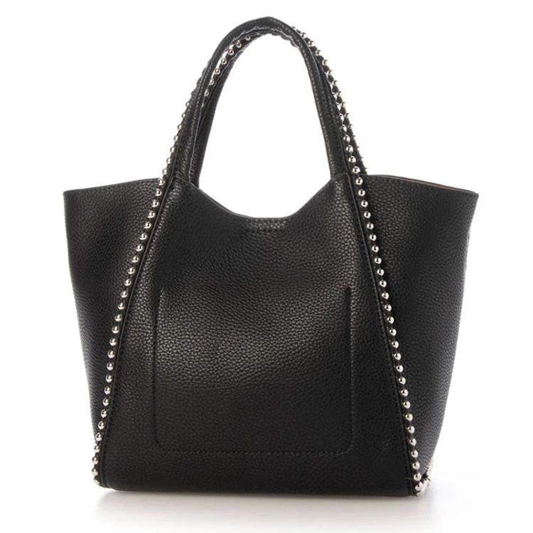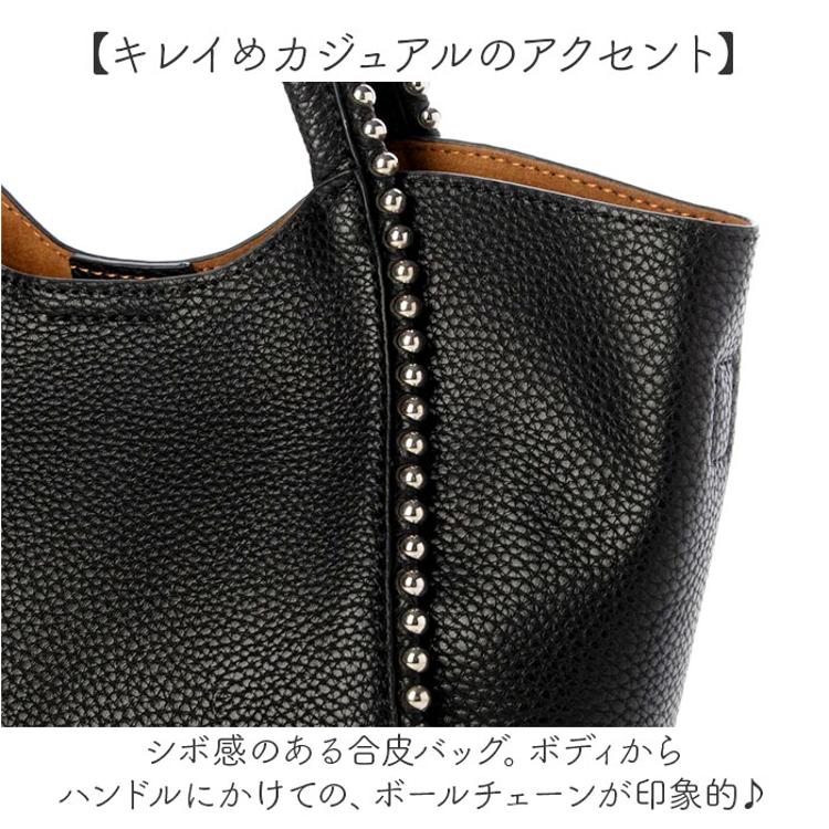 ・シボ感のある合皮バッグ。ボディからハンドルにかけての、ボールチェーンが印象的♪