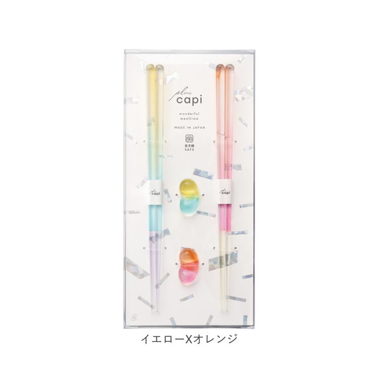 ・ガラス箸置き付きトロピカルデザインの「capi giftトロピカルペア箸」。