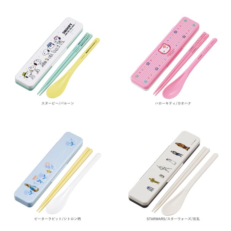 商品説明・カチャカチャ音が鳴りにくい!キャラクター柄がとっても可愛いお箸・スプーンのコンビセットが新登場。