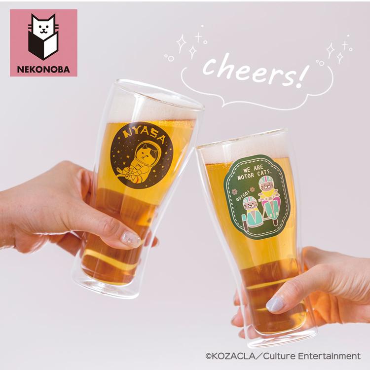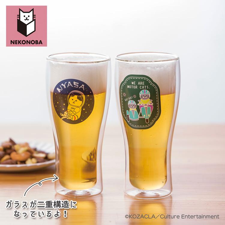 NEKONOBA グッズ 通販 ネコノバ ダブルウォール ビアグラス ビールグラス ビール グラス 結露しない 食洗機不可 電子レンジ不可 猫 ねこ ネコ 猫グッズ かわいい おしゃれ 300ml
