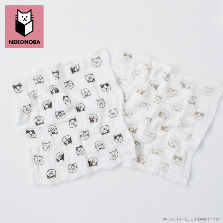 NEKONOBA グッズ 通販 ネコノバ ガーゼハンカチ 2枚セット ハンカチ タオルハンカチ セット ハンドタオル ハンカチタオル ガーゼタオル ミニタオル ふきん 布巾 お口拭き 手拭き