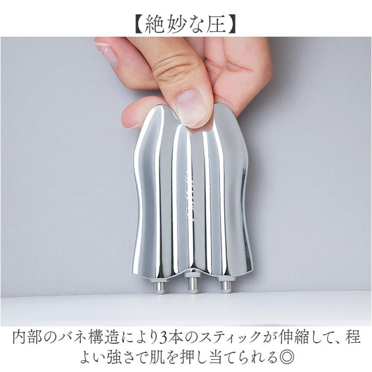・内部のバネ構造により3本のスティックが伸縮して、程よい強さで肌を押し当てられる◎