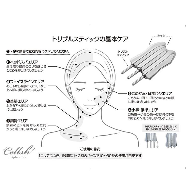 3本のスティックが伸縮して、気になる部位を心地よく刺激する「Cellsh トリプルスティック」♪