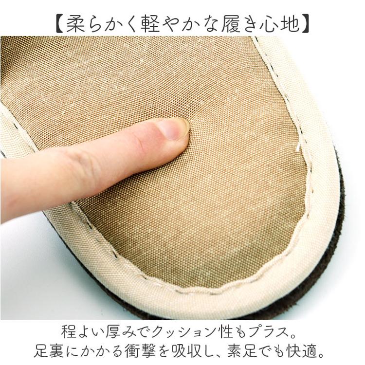 ・程よい厚みでクッション性もプラス。足裏にかかる衝撃を吸収し、素足でも快適。