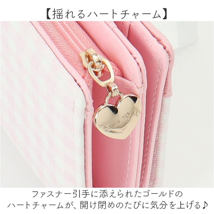 ・ファスナー引手に添えられたゴールドのハートチャームが、開け閉めのたびに気分を上げる♪